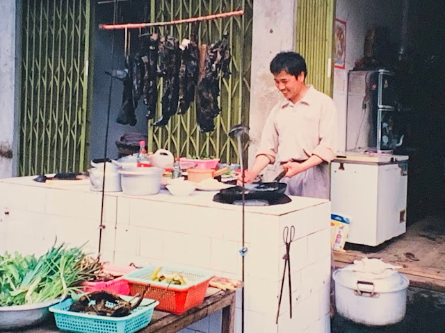 1998 年和同行家人閒逛麗江古城,在這小舖吃了兩道菜,一份為臘腸煲飯,另一份應該是雲南米線,四人分食一盡,猶記吃完滿口留香,計價人民幣14元